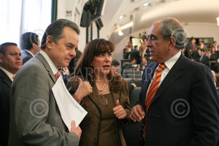 MÉXICO, D.F., 10MARZO2011.- José González Morfín, coordinador de los senadores panistas, cabildeando con Manuel Velasco, senador del PVEM, en la sesión del Senado de la República. FOTO: MOISÉS PABLO/CUARTOSCURO.COM