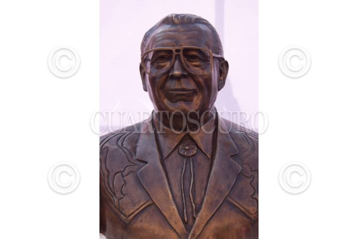 MÉXICO, D.F., 10MARZO2011.- Poncho Lizarraga, líder la banda El Recodo, encabezó la develación de un busto en honor a Don Cruz Lizarraga, fundador de esta agrupación, en la explanada de la delegación Álvaro Obregón. FOTO: IVÁN STEPHENS/CUARTOSCURO.COM