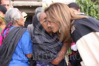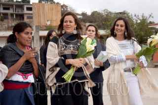 QUIEGOLANI, OAXACA, 10MARZO2011.- Mané Sánchez Cámara de Cué, presidenta del DIF estatal, Margarita Zavala, esposa del Presidente de los Estado Unidos Mexicanos y Patricia espinosa Cantellano, Secretaria de Relaciones Exteriores, convivió con mujeres indígenas de esta población en el marco de la conmemoración del Día Mundial de la Mujeres, en esta visita también visitó una escuela primaria. FOTO: ERIKA JEANET GARCÍA/CUARTOSCURO.COM