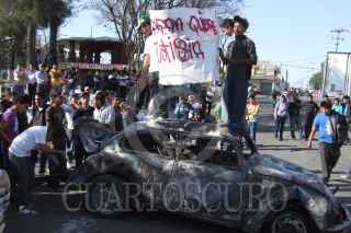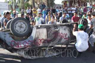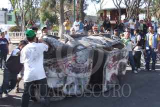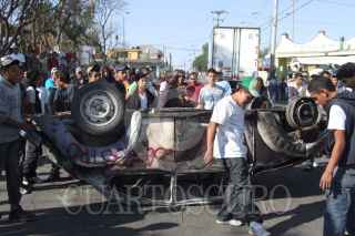 ACOLMAN, ESTADO DE MÉXICO, 10MARZO2011.- Pobladores de Tepexpan, bloquearon la carretera Mexico-Piramides y quemaron un vehiculo, despues que trataron de linchar a unos sujetos que sorprendieron presuntamente secuestrando a unos estudiantes. FOTO: SAÚL LÓPEZ/CUARTOSCURO.COM