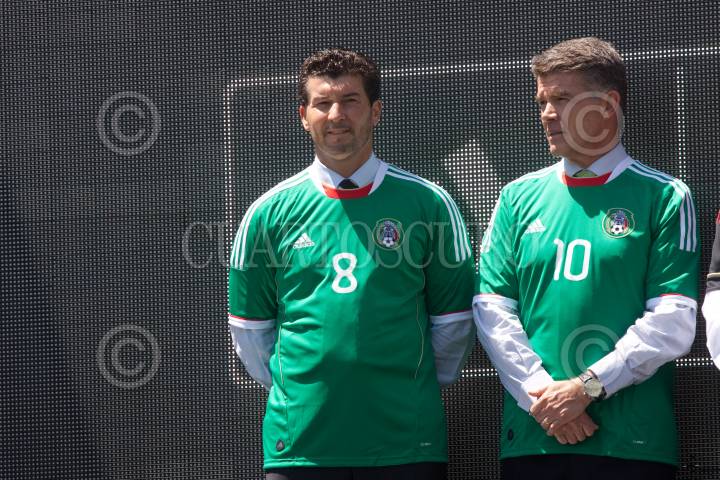 MÉXICO, D.F., 11MARZO2011.- José Manuel "Chepo" de la Torre Menchaca, director técnico de la selección mexicana de futbol; y Héctor González Iñárritu, director de Selecciones Nacionales de fútbol; presentaron la nueva playera que utilizarán los seleccionados nacionales de la marca ADIDAS. FOTO: IVAN STEPHENS/CUARTOSCURO.COM
