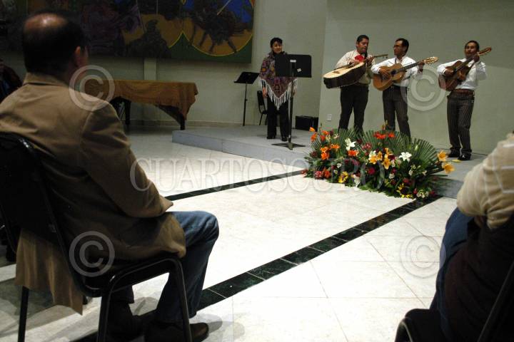 ZACATECAS, ZACATECAS, 11MARZO2011.- La noche de ayer se realizó en el Núcleo Issstezac de Cultura del estado, la exposición pictórica sobre el corrido zacatecano, obra realizada por destacados artistas zacatecanos, Emilio Carrasco, Jesús Reyes Cordero, Susana Salinas, Alfonso Lopez Monreal, entre otros. La inauguración estuvo acompañada de la presentación del Trío Rey que musicalizo el evento con corridos tradicionales zacatecanos. FOTO: ADOLFO VALTIERRA/CUARTOSCURO.COM