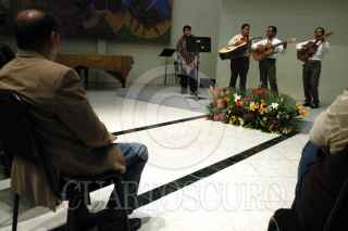 ZACATECAS, ZACATECAS, 11MARZO2011.- La noche de ayer se realizó en el Núcleo Issstezac de Cultura del estado, la exposición pictórica sobre el corrido zacatecano, obra realizada por destacados artistas zacatecanos, Emilio Carrasco, Jesús Reyes Cordero, Susana Salinas, Alfonso Lopez Monreal, entre otros. La inauguración estuvo acompañada de la presentación del Trío Rey que musicalizo el evento con corridos tradicionales zacatecanos. FOTO: ADOLFO VALTIERRA/CUARTOSCURO.COM