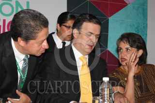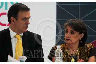 MÉXICO, D.F., 14MARZO2011.- Marcelo Ebrard, Jefe de Gobierno Capitalino junto a Yoloxóchitl Bustamante directora del IPN, durante lnauguracion de la feria de Inovacion Tecnológica. FOTO: ENRIQUE ORDÓÑEZ/CUARTOSCURO.COM