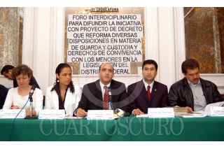 México, D.F. 08 JULIO 2004.- Al centro el diputado local del PAN José Antonio Arévalo y Representante de diversas Asociaciones Civiles, se pronunciaron por reformar los Códigos Civil y de Procedimientos Civiles y Penales para crear la figura de Custodia Compartida de ambos progenitores después de los siete años. FOTO: /CUARTOSCURO.COM