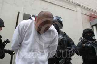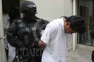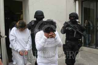 MÉXICO, D.F., 14MARZO2011.- Personal de la Procuraduria de Justicia del Distrito Federal, presentaron ante los medios de comunicación a cinco personas que presuntamente se dedicaban al secuestro, entre los detenidos hay dos policías ministeriales del Distrito Federal pertenecientes a la coordinaciones territoriales 2 y 5 de la delegación Cuahutemoc. FOTO: SAÚL LÓPEZ/CUARTOSCURO.COM