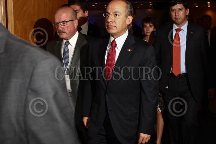 MÉXICO, D.F., 14MARZO2011.- Felipe Calderón Hinojosa, presidente de México, inauguró la American Chamber of Commerce of Mexico, realizado en un conocido hotel de la Ciudad de México. FOTO: MISAEL VALTIERRA/CUARTOSCURO.COM
