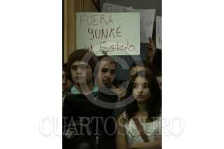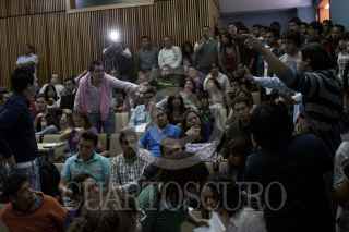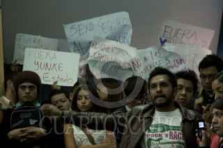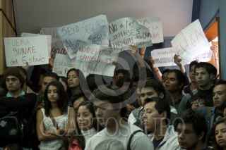 MÉXICO, D.F., 15MARZO2011.- Manuel Espino, militante del Partido Acción Nacional, acudió a la Facultad de Ciencias Políticas y sociales de la UNAM a presentar su libro "Volver a empezar" donde fue recibido con protestas de la comunidad universitaria. FOTO: IVÁN STEPHENS/CUARTOSCURO.COM
