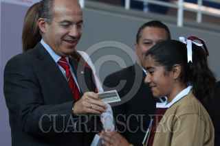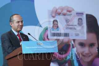 IRAPUATO, GUANAJUATO, 15MARZO2011.- Felipe Calderon, Presidente de México asistió a la ceremonia del inicio del programa de cedula de identidad "Como tu no hay dos". FOTO: ALFREDO GUERRERO/CUARTOSCURO.COM