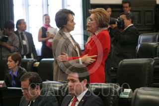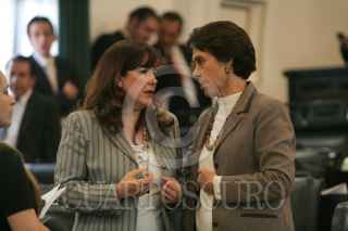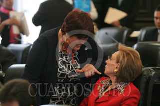 MÉXICO, D.F., 15MARZO2011.- La panista María Teresa Ortuño conversa con la priista Rosario Green Macías, en la sesión del Senado de la República. FOTO: MOISÉS PABLO/CUARTOSCURO.COM