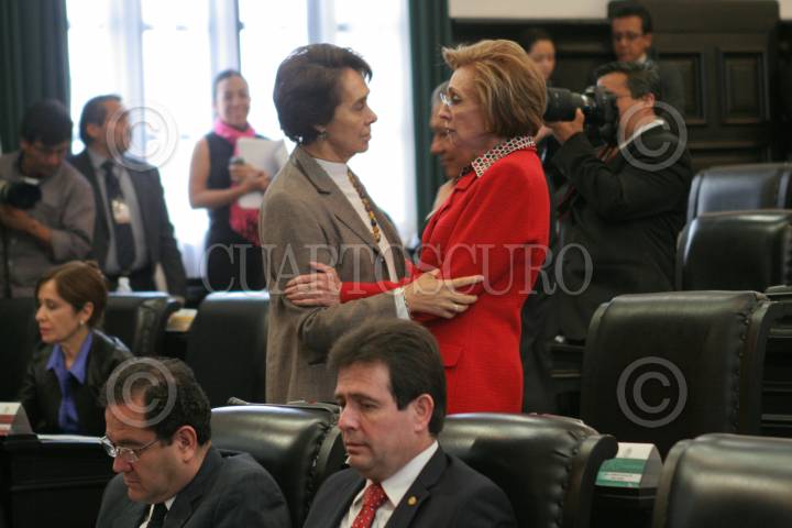 MÉXICO, D.F., 15MARZO2011.- La panista María Teresa Ortuño conversa con la priista Rosario Green Macías, en la sesión del Senado de la República. FOTO: MOISÉS PABLO/CUARTOSCURO.COM