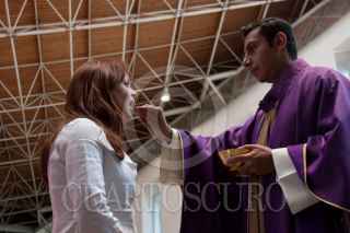 MÉXICO, D.F., 16MARZO2011.- El elenco de la telenovela Emperatriz acudió a la misa de inicio de grabaciones realizada en la parroquia La Esperanza de María en la Resurrección del Señor. La telenovela será transmitida por la televisora T.V. Azteca. Aquí Gabriela Spanic. FOTO: IVÁN STEPHENS/CUARTOSCURO.COM