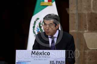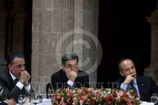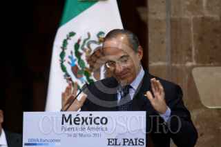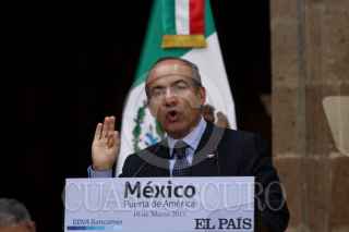 MÉXICO, D.F., 16MARZO2011.- El presidente Felipe Calderón durante la comida en el marco del foro: México Puerta de América, Grupo Financiero BBVA Bancomer y el Diario El País que se realizo en el Club de Banqueros. FOTO: RODOLFO ANGULO/CUARTOSCURO.COM