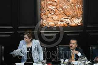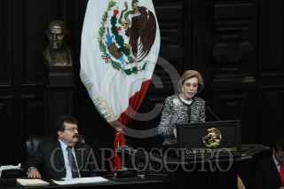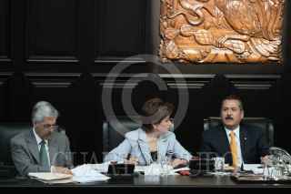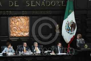 MÉXICO, D.F., 17MARZO2011.- Patricia Espinosa Cantellano, Secretaria de Relaciones Exteriores, Manlio Fabio Beltrones, presidente de la mesa directiva del Senado de la República y Arturo Nuñez, senador perredista, durante la sesión en la que compareció ante este pleno en la cual tuvó que responder sobre la autorización del gobierno para que aeronaves no tripuladas de EU sobrevolaran el espacio aéreo y sobre el operativo "Rápido y Furioso". FOTO: MOISÉS PABLO/CUARTOSCURO.COM