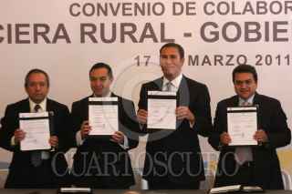 PUBELA, PUEBLA, 17MARZO2011.- Gustavo Merino, director general de Financiera Rural, durante la firma de convenio de colaboración para el subsidio de 100 millones de pesos destinados a la compra de fertilizante en apoyo a los productores del campo poblano. FOTO: FRANCISCO GUASCO/CUARTOSCURO.COM