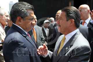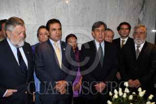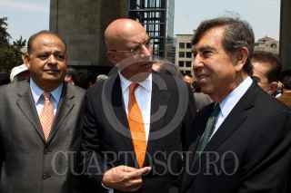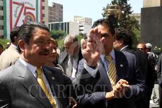 MÉXICO, D.F., 18MARZO2011.- El senador Dante Delgado conversan con el ingeniero Cuauhtemoc Cardenas Solorzano a su salida después de montar una guardia de honor ante la tumba del general Lázaro Cárdenas del Río por motivo del 73 aniversario de la Expropiación Petrolera que se realizo en el Monumento a la Revolución. FOTO: RODOLFO ANGULO/CUARTOSCURO.COM