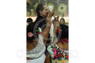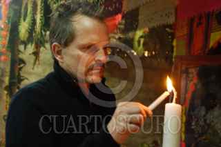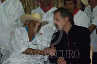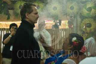 PAPANTLA, VERACRUZ, 19MARZO2011.- El cantautor español Miguel Bosé recibió una limpia en el Nicho de la Purificación, donde también se reunió con el Líder Supremo Totonaca, en el marco de la Cumbre Tajín 2011, donde ofrecerá un concierto esta noche. FOTO: CUARTOSCURO.COM
