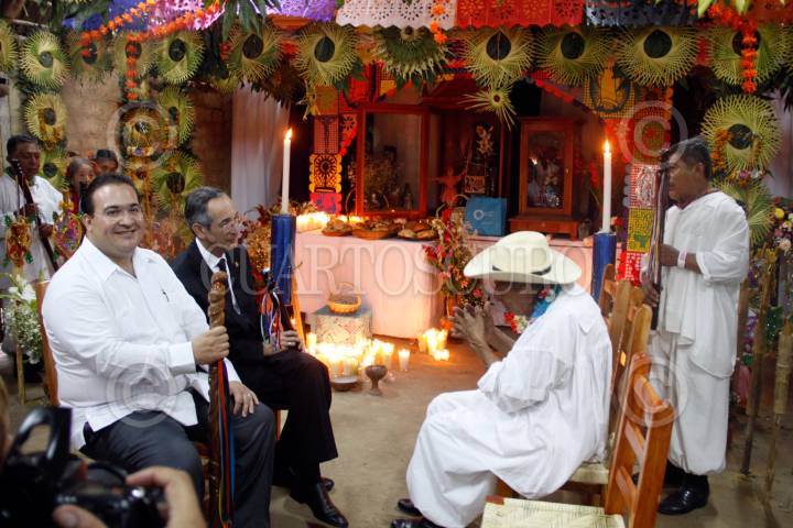 PAPANTLA, VERACRUZ, 19MARZO2011.- El Presidente de Guatemala Álvaro Colom, visitó esta tarde la Cumbre Tajín en compañia del Gobernador del Estado Javier Duarte de Ochoa, los mandatarios platicaron temas referentes a la migración de ciudadanos guatemaltecos en nuestro territorio. FOTO: FÉLIX MÁRQUEZ/CUARTOSCURO.COM