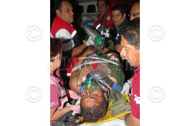 MÉXICO, D.F., 21MARZO2011.- Un camión de la Secretaria de la Defensa Nacional, volcó con personal a bordo en la carretera Atlacomulco-Queretaro, dejando como saldo, 4 militares sin vida y 20 heridos, mismos que fueron trasladados en helicópteros del Estado de México hacia el Distrito Federal, para ser atendidos en el hospital militar. FOTO: SAÚL LÓPEZ/CUARTOSCURO.COM