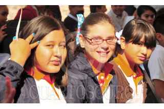 CHAPALA, JALISCO, 22MARZO2011.- Chapala festeja el día mundial del agua en la plaza La vela del municipio. En un hermoso entorno, estudiantes de escuelas publicas y privadas entre ellos alumnos de primaria del instituto Terranova de Ajijic, ordenaditos y en cola llevando pancartas entregaron miles de pilas para reciclar y evitar la contaminación del agua. Concurso al cual habían sido invitados a participar semanas antes. Al igual se distribuyó un folleto para invitar a los niños como detective para el cuidado del agua y se le regaló una camiseta que los invitaba a respetar el vital liquido. Tomaron parte al evento elementos de Policías, bando de guerra Chapala y algunas autoridades municipales tomaron la palabra entre ellos el director de Simapa Chapala C.Marcos R. Godinez P. FOTO: MARIA DI PAOLA BLUM/CUARTOSCURO.COM