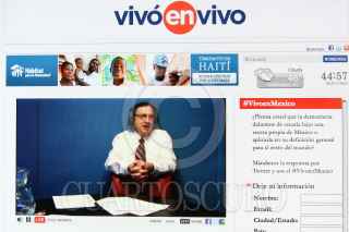 MÉXICO, D.F., 23MARZO2011.- José Gutierrez Vivó, periodista, durante la transmición en Vivo de su nuevo programa en internet, "Vivó en vivo". El locutor, ex director de Monitor radio y Diario Monitor, retomó los micrófonos desde el 21 de marzo a través de la cadena Link Media Corporation, desarrollada por él mismo en Estados Unidos y desde la cual conducirá su programa. FOTO: CUARTOSCURO.COM