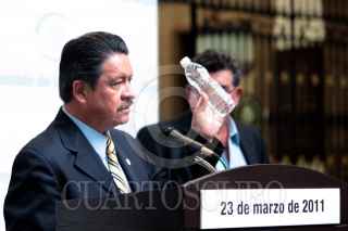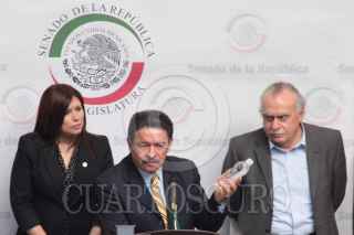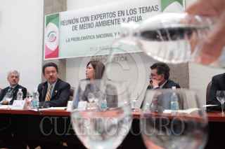 MÉXICO, D.F., 23MARZO2011.- Carlos Navarrete Ruiz, presidente del instituto Belisario Domínguez y Claudia Corichi García, presidenta de la Comisión de Recursos Hidráulicos, ambos senadores del partido de la Revolución Democrática (PRD); durante un encuentro con expertos en el tema de escasez de agua, de igual manera se anunció el Simposium para el Día del Agua, que se llevará a cabo el día de mañana en el Patio Central de Xicoténcatl. FOTO: CUARTOSCURO.COM