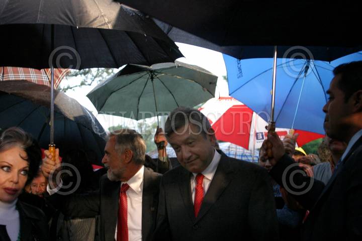 México, D.F. 20 JULIO 2004.- Mauricio Maillé, fundación Televisa, Yolanda Montes Tongolele, bailarina, Andrés Manuel López Obrador, jefe de Gobierno capitalino, Enrique Semo, secretario de Cultura DF, Cesar Tello y fundación Integros y Carlos Aguirre, historiador, al finalizar la inauguración de la exposición " Memoria de la Ciudad de México, ubicada en las rejas del Bosque de Chapultepec. FOTO: Sandra Perdomo/CUARTOSCURO.COM