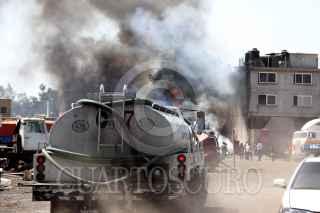 MÉXICO, D.F., 25MARZO2011.- Un vehículo y dos cajas de trailer, se consumieron por las llamas que abrazaron un deshuesadero ubicado en las calles Manuel Salazar y Federico Dávalos en la colonia Ex-Hacienda El Rosario en Azcapotzalco. Al lugar arribaron elementos del cuerpo de Bomberos de esta delegación y Naucalpan. FOTO: LUIS CARBAYO/CUARTOSCURO.COM