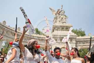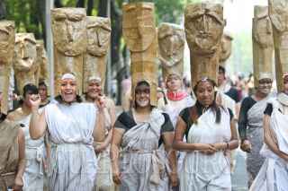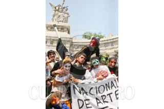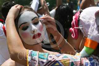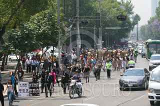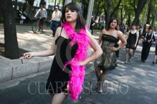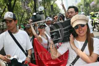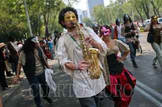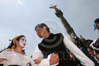 MÉXICO, D.F., 26MARZO2011.- Actores y teatreros marcharon sobre avenida Reforma, del Angel de la Independencia al Hemiciclo a Juárez, para celebrar el Día Internacional del Teatro. FOTO: ISAAC ESQUIVEL/CUARTOSCURO.COM