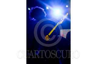 MÉXICO, D.F., 28MARZO2011.- El pasado sábado 26 de marzo Timothy Brownie, integrado por Uriel del Toro (batería), Gonzalo Sandoval (sintetizador), Andrés Cruz (guitarra, en la imagen) Mariano Lanús (bajo) y Javier Cevacini (sax,), la banda abrió su participación con el tema "Así hablo Zaratustra". Ésto se realizó en el Palacio Chino de Six Flags al sur de la ciudad. FOTO: MISAEL VALTIERRA/CUARTOSCURO.COM