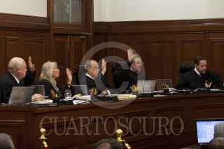 MÉXICO D.F., 28MARZO2011.- Votaciones de los Ministros de la Suprema Corte de Justicia de la Nación durante la sesión en donde se desecho el amparo que promovieron 15 intelectuales, para impugnar la reforma constitucional del 2007, que prohibió a los particulares contratar propaganda electoral en radio y televisión. FOTO: GUILLERMO PEREA/CUARTOSCURO.COM