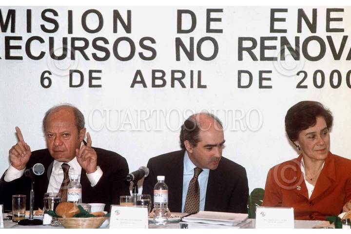 Los legisladores Carlos Romero Deschamps y Rodolfo Becerril acompañan al secretario Luis Tellez, quien esta mañana se reunió con la Comisón de Energía de la Cámara Alta para explicar temas del horario de verano y el aumento en la producción del petróleo.