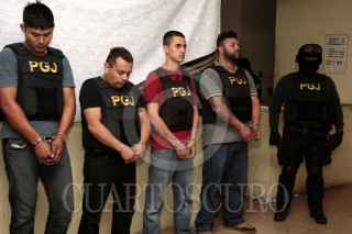 CANCÚN, QUINTANA ROO, 29MARZO2011.- La Procuraduría General de Justicia zona norte realizo la presentación de un grupo de presuntos sicarios y secuestradores. Los aprehendidos y confesos responden a los nombres de Jesús Omar Campos Hernández "El Grande", Ramses Fernando Arreola Sánchez "El Ramses", Víctor Manuel Delgado Medrano "El Chumil" y José Salvador Reynaga Zuñiga "El Bebe"; indican las fuentes policíacas que los presentados ya tenían todo resuelto y en espera del nuevo secretario de seguridad pública, general Villa para emboscarlo y ejecutarlo. FOTO: MARCO POLO GUZMÁN HERNÁNDEZ/CUARTOSCURO.COM