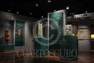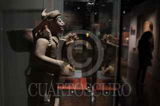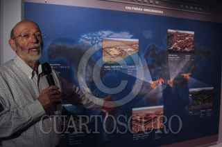 MÉXICO, D.F., 30MARZO2011.- El profesor Eduardo Matos Moctezuma, realizó un recorrido con los medios de comunicación en la exposición "Seis ciudades antiguas de mesoamerica" en el Museo Nacional de Antropología. FOTO: ENRIQUE ORDÓÑEZ/CUARTOSCURO.COM