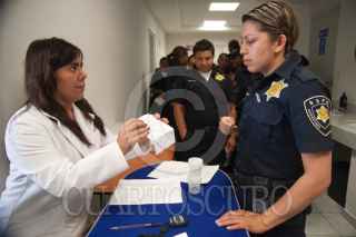 QUERÉTARO, QUERÉTARO, 30MARZO2011.- Esta mañana de manera sorpresiva, más de 250 elementos de la Secretaría de Seguridad Pública Municipal les fueron practicados exámenes antidoping, que incluyen detección de consumo de sustancias como cocaina, marihuana, alcohol, entre otras. FOTO: DEMIAN CHÁVEZ/CUARTOSCURO.COM