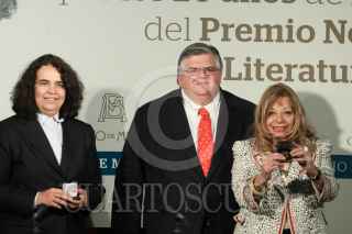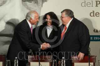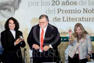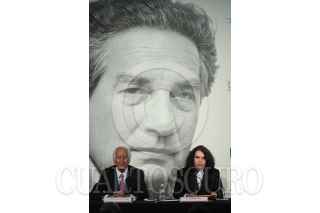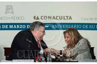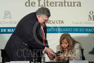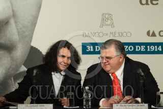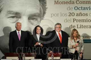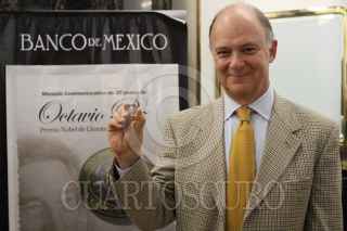 MÉXICO, D.F., 31MARZO2011.- Marcelo de los Santos Fraga, director general de la Casa de Moneda y Consuelo Sáizar, presidenta del Consejo Nacional para la Cultura y las Artes (CONACULTA), durante la presentación de la moneda de veinte pesos que conmemora su valor en años la entrega del Premio Nobel de la Paz a Octavio Paz (1914-1998), la ceremonia se realizó en la sede central del Banco de México. FOTO: MOISÉS PABLO/CUARTOSCURO.COM