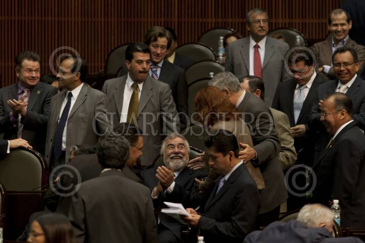 MÉXICO D.F., 31MARZO2011.- Diputados del PT PRD y Convergencia, protestaron con carteles alucivos a la reforma laboral, durante la sesión ordinaria en la Cámara de Diputados. FOTO: GUILLERMO PEREA/CUARTOSCURO.COM