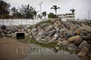 BOCA DEL RÍO, VERACRUZ., 31MARZO2011.- A pocos días del inicio de Semana Santa donde la conurbación recibe a miles de turistas, los aspectos y olores de las playas no son muy gratos, ya que aguas residuales provenientes del sistema de drenaje son arrojadas al mar a la vista de todos, algunas tuberías son tapadas con montículos de tierra, sin embargo, los desechos siguen brotando sin que las autoridades tomen cartas en el asunto. FOTO: FÉLIX MÁRQUEZ/CUARTOSCURO.COM