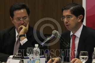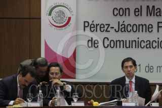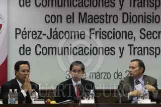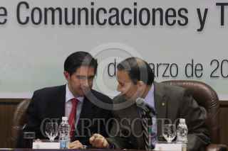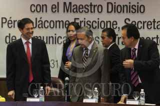 MÉXICO, D.F., 31MARZO2011.- El senador Panista, Jose Julian junto a Dionisio Perez Jácome, Secretario de Comunicaciones y Transporte durante la reunión de Trabajo de la Comisión de Comunicaciones y Transporte. FOTO: ENRIQUE ORDÓÑEZ/CUARTOSCURO.COM