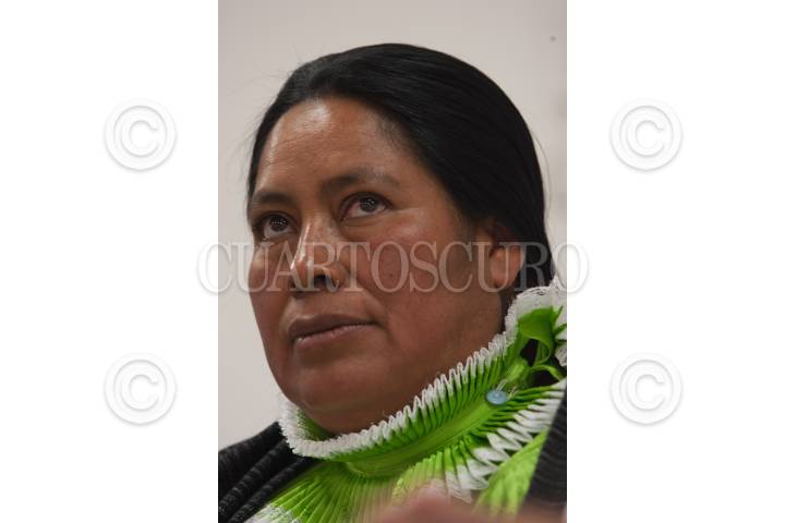 QUERÉTARO, QUERÉTARO, 01ABRIL2011.- Jacinta Francisco Marcial, indígena del municipio de Amealco, quien fuera acusada y absuelta del secuestro de 6 elementos de la AFI en 2006, inauguró la sala audiovisual dedicada al recién fallecido obispo emérito de Chiapas, Samuel Ruíz en la facultad de Filosofía de la Universidad Autónoma de Queretaro donde se lleva acabo un foro sobre teología de la liberación. Y a donde ella fue invitada a sentarse en el estrado para dirigir unas palabras. FOTO: DEMIAN CHÁVEZ/CUARTOSCURO.COM