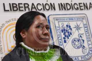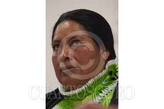 QUERÉTARO, QUERÉTARO, 01ABRIL2011.- Jacinta Francisco Marcial, indígena del municipio de Amealco, quien fuera acusada y absuelta del secuestro de 6 elementos de la AFI en 2006, inauguró la sala audiovisual dedicada al recién fallecido obispo emérito de Chiapas, Samuel Ruíz en la facultad de Filosofía de la Universidad Autónoma de Queretaro donde se lleva acabo un foro sobre teología de la liberación. Y a donde ella fue invitada a sentarse en el estrado para dirigir unas palabras. FOTO: DEMIAN CHÁVEZ/CUARTOSCURO.COM