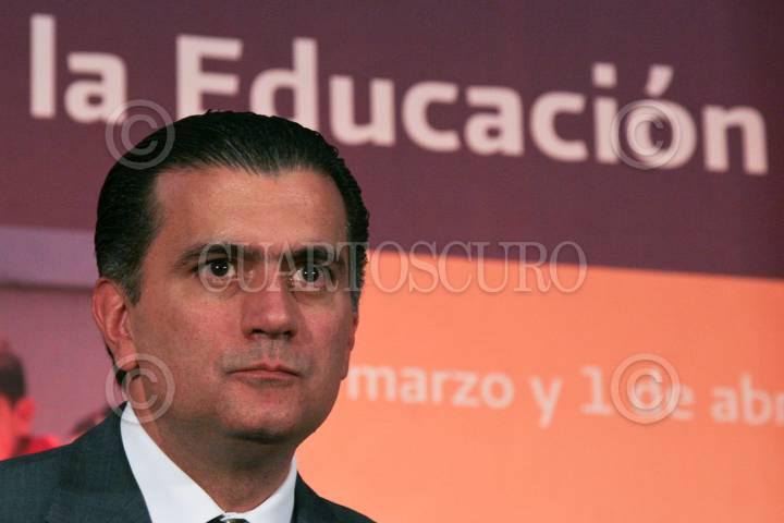MÉXICO, D.F., 01ABRIL2011.- Alonso Lujambio Irazábal, secretario de Educación Pública, saluda a Alonso Cepeda, representante del Comité Ejecutivo Nacional del Sindicato Nacional de los Trabajadores de la Educación (SNTE), durante la clausura del VIII Encuentro Nacional de Participación Social en la Educación organizado por la SEP. Ésto se realizó en el salón Hispanoamericano de la sede de esta dependencia. FOTO: MISAEL VALTIERRA/CUARTOSCURO.COM