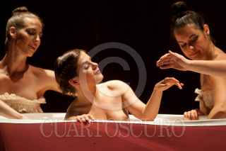 MEXICO, D.F., 02ABRIL2011.- Anoche se estrenó la puesta en escena "El placer de nuestra lengua", en el teatro Julio Castillo del Centro Cultural del Bosque, donde participan Ofelia Medina y Ruben Albarrán, vocalista de Café Tacvba, y Francesca Guillén, entre otros. FOTO: ISAAC ESQUIVEL/CUARTOSCURO.COM