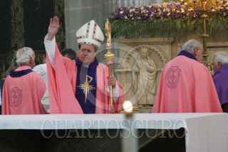 MÉXICO, D.F., 02ABRIL2011.- Norberto Rivera Cabrera, Arzobispo primado de México, saluda a los asistentes durante su misa dominical este medio día en la Catedral Metropolitana de la Ciudad de México. FOTO: MISAEL VALTIERRA/CUARTOSCURO.COM