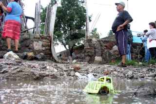 Jiutepec, Morelos 24 Julio 2004.- Los niños Uriel González de 9 años y Sauri González de aproximadamente 2 años de edad murieron a causa del derrumbe de una de las bardas de su casa a causa de las intensas lluvias que azotaron a Jiutepec, Morelos. FOTO: Diana Peña/CUARTOSCURO.COM