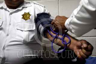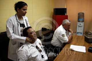 VERACRUZ, VERACRUZ., 05ABRIL2011.-La delegación de tránsito en el municipio de Veracruz arrancó el programa contra la obesidad en el que se busca controlar el peso de los elementos que trabajan en esta corporación, por lo que esta tarde médicos de la facultad de nutrición de la Universidad Veracruzana realizaron pruebas y exámenes a los agentes viales en turno. FOTO: FÉLIX MÁRQUEZ/CUARTOSCURO.COM