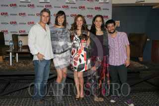MÉXICO, D.F., 05ABRIL2011.- Moises Arizmendi, Ursula Pruneda, Mónica Huarte, Gabriela de la Garza y Bernardo Gamboa, actores; posan para los fotógrafos previo a la conferencia de prensa que se ofreció en un conocido teatro de la Ciudad de México, donde se dio pormenores de la puesta en escena "Casi un Pueblo", de John Cariani y bajo la dirección de José Manuel López Velarde. FOTO: MISAEL VALTIERRA/CUARTOSCURO.COM
