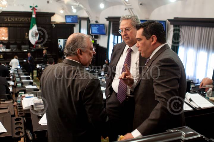 MÉXICO, D.F., 05ABRIL2011.- El senador panista José Isabel Trejo, conversando con el priista Fernando Castro Trenti, en la seisón de la Cámara de Senadores. FOTO: MOISÉS PABLO/CUARTOSCURO.COM