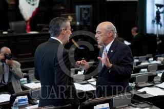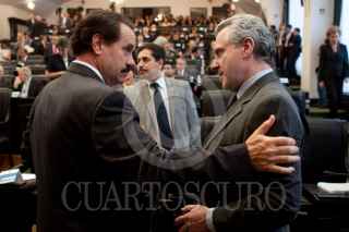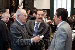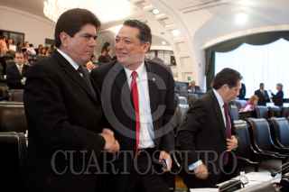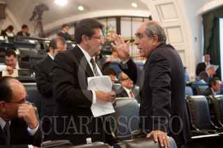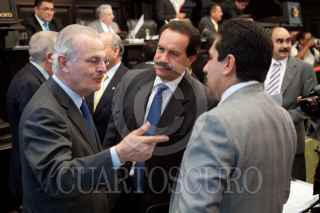 MÉXICO, D.F., 05ABRIL2011.- El senador panista José Isabel Trejo, conversando con el priista Fernando Castro Trenti, en la seisón de la Cámara de Senadores. FOTO: MOISÉS PABLO/CUARTOSCURO.COM
