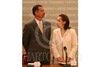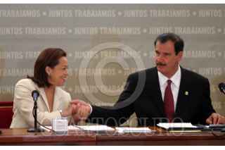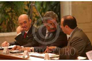 México, D.F., 26JULIO2004.- Fernando Elizondo, secretario de Energía y Rodolfo Elizondo, secretario de Turismo, durante la firma de la instalación de la comisión Intersecretarial de Desarrollo Social, realizada en los Pinos. FOTO: Moisés Pablo/CUARTOSCURO.COM